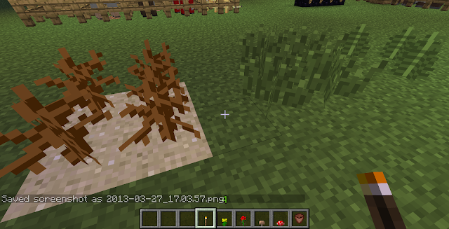the various grass items are shown in these pictures here. Derivation changes the ferns to look more like clumps of tall grass, the grass to look more like... um, grass; and the dead bushes to look like cactuses.